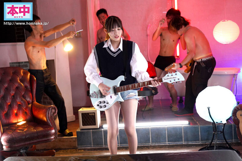 有像吗?管她像不像,大家马上把她造型成了偶像的模样,让她在镜头前小秀了一手吉他的实力,男优则是在他身后当她的团员ー我觉得这招挺不错的,以后未歩なな(未步奈奈)也可以试试,而在证明了自己是真的会弹会唱后,接下来就要进行与男优的短兵相接惹〜